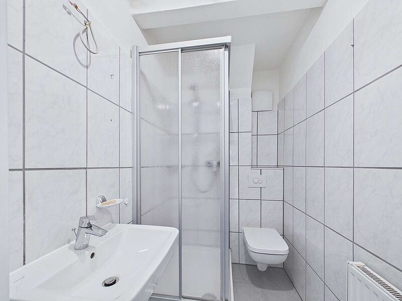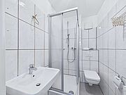 Badezimmer: mit Dusche, Waschbecken, Toilette
